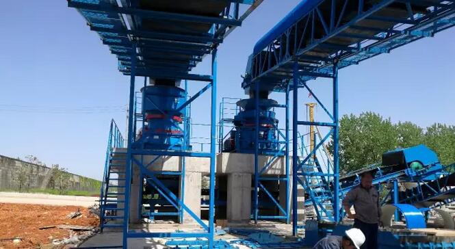 3、圓錐破碎機:圓錐破碎機一般用于中破,優(yōu)勢在于過載保護裝置,其采用層壓是破碎原理,所以耐磨件磨損小,但是其產(chǎn)品粒形針片狀較多,如果對物料粒形有要求的話,不建議采用這款設備,當然也可以在圓錐破碎機后使用制砂機老得到進一步破碎和整形的目的。